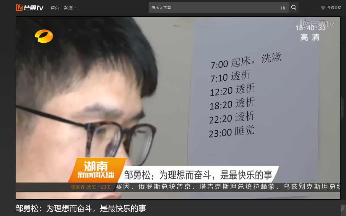 湖南卫视 6月10日新闻联播,以《邹勇松:为理想而奋斗,是最快乐的事》为题对云顶国际vip8866计算机与通信工程学院15级研究生邹勇松进行了报道。