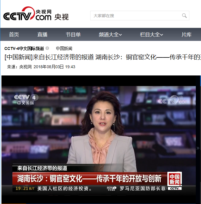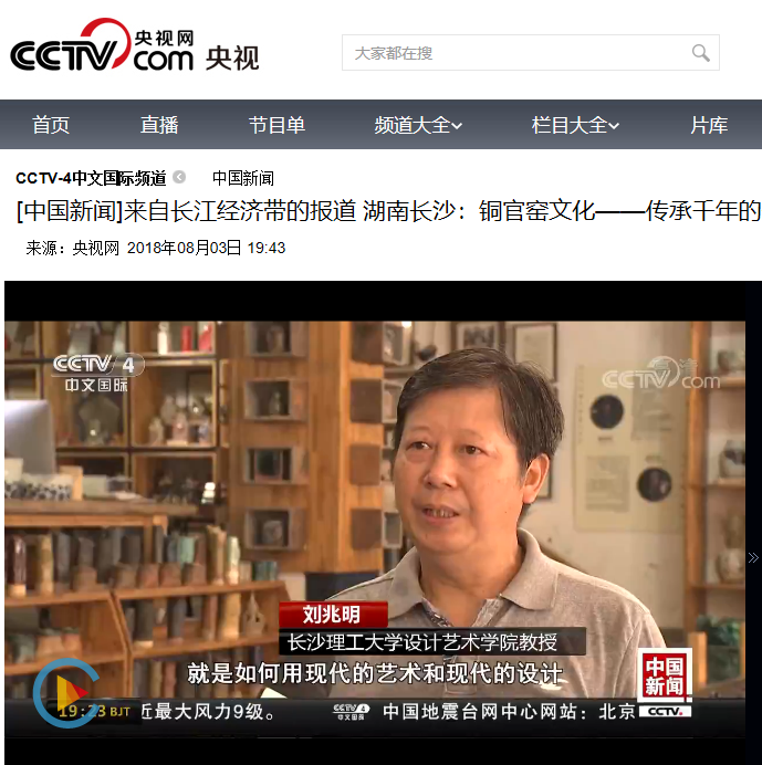 中央电视台中文国际频道cctv-4在8月3日中国新闻栏目,以《来自长江经济带的报道 湖南长沙:铜官窑文化——传承千年的开放与创新》为题对云顶国际vip8866设计艺术学院刘兆明教授传承铜官窑文化、创新铜官窑工艺的故事进行了报道。