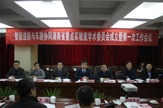 131下午,由交通运输工程学院、汽车与机械工程学院、计算机与通信工程学院联合建设的智能道路与车路协同湖南省重点实验室第一届学术委员会成立暨第一次工作会议在云顶国际vip8866召开。