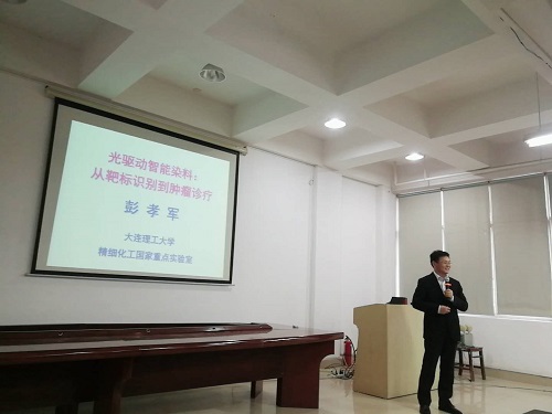 11月20日下午,大连理工大学教授、国家杰出青年基金获得者,教育部“长江学者”特聘教授、中国科学院院士彭孝军应邀来云顶国际vip8866进行学术交流,在云塘校区工科三号楼A320会议室为化学学院师生作了一场题为“光驱动智能染料:从靶标识别到肿瘤诊疗微纳生物传感研究进展”的学术报告。报告会由化学学院院长杨荣华主持,院党委书记程云辉、副院长曹忠、朱志平及化学、化工、食品、生物等相关学科的老师、研究生100余人参加了学术报告会。