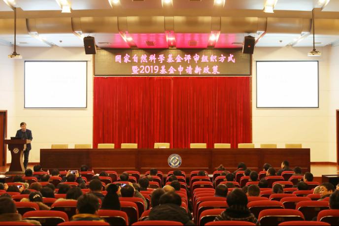 1月10日上午,学校在云塘校区图书馆报告厅召开了“国家自然科学基金评审组织方式暨2019基金申请新政策”交流会,会议由副校长杨伟军主持,计通学院王进教授作交流报告,科研部领导,部分学院院领导、老师、科研管理人员等200余人参加了会议。