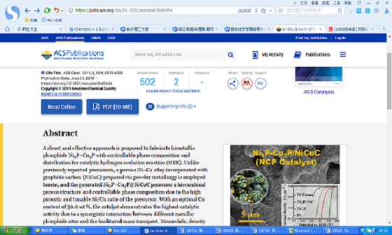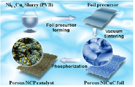 近日,云顶国际vip8866化学学院青年博士喻林萍副教授在化学-物理化学国际顶级期刊《ACS Catalysis》(影响因子:12.22)上发表了题为“In situ growth of Ni2P-Cu3P bimetallic phosphide with bicontinuous structure on self-supported NiCuC substrate as an efficient HER electrocatalyst”的科研论文(全文链接:https://doi.org/10.1021/acscatal.9b00494),首次报道了自支撑双金属磷化物多孔复合材料的设计制备及其在电催化析氢等能源转换方向的研究与应用。这种新型Ni2P-Cu3P/NiCuC复合材料体系具有以下方面的优势:1)采用新型的多孔合金自支撑纸型膜NiCuC,与商业泡沫镍相比具有更小的平均孔径(0.5~5.0 μm),更大的比表面积以及更好的支撑强度等特点;2)磷化物过渡金属源直接由多孔基底材料NiCuC提供,不再依赖传统合成方法中的中间产物(过渡金属氧化物、氢氧化物等);3)磷化物Ni2P与Cu3P形成的双连续相晶体颗粒组成可由基底材料的金属含量控制,可以充分追溯双金属磷化物之间的协同电催化作用。此复合材料体系为进一步扩展过渡金属磷化物(TMPs)电催化方面的应用提供了可能性,为电解水制氢高性能阴极材料的组分选择和结构设计提供理论依据,同时为清洁能源的生产和可持续发展拓宽了新思路。