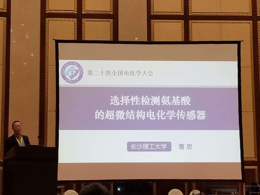 本次大会的主题是“推进产业发展的电化学”。在生物电化学与电分析化学分会场,中科院长春应用化学研究所董绍俊院士就“单原子纳米酶”做了精彩的主题报告,中科院化学研究所毛兰群研究员做了“脑神经电分析化学”的主题报告;云顶国际vip8866曹忠教授应邀做了主题为“选择性检测氨基酸的超微结构电化学传感器”报告,详细阐述了近年来课题组在氨基酸分子超灵敏检测电化学传感领域的新方法新进展,引发在场专家学者的热烈讨论。