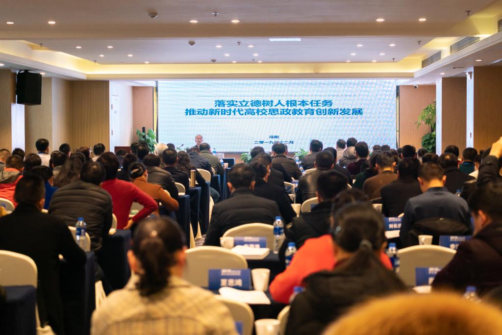 聘任仪式后,冯刚教授为2019年湖南省高校学工部部长培训班作题为《落实立德树人根本任务,推动新时代高校思政教育创新发展》的专题报告。冯刚教授以马克思主义的观点、立场和方法回顾了改革开放以来高校思想政治教育政策发展;他提出学习贯彻全国思政工作会议、全国教育大会和思想政治理论课教师代表座谈会,要牢牢把握立德树人的根本任务、坚持以人民为中心的价值追求、树立扎根中国大地办教育的坚定自信、确定优先发展教育的战略布局、深化教育体制改革的创新导向。