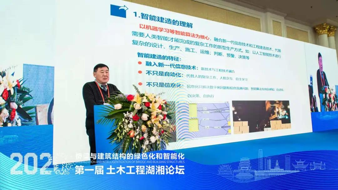 12月19日上午,在长沙召开的第一届土木工程湖湘论坛上,著名结构工程专家、中国工程院院士、重庆大学钢结构工程研究中心主任周绪红院士以《建筑工程智能建造技术若干思考》为题,作了首场极具“专业性、丰富性、内涵性”的精彩学术报告。400多在场人员以及线上3万多土木领域专家学者共同聆听了来自学术最顶端、最前沿的声音。