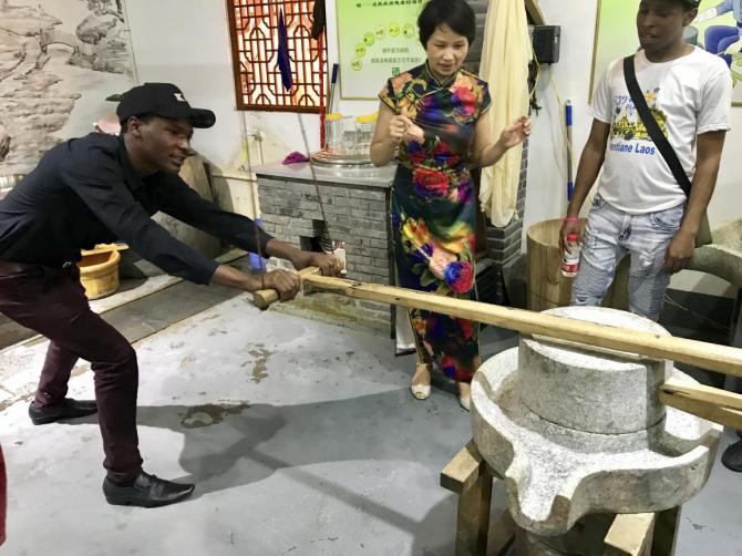 The eyeful of cultural exhibits in Yuhua Intangible Cultural Heritage Museum overwhelmed the students, and the exquisite and matchless craftsmanship of artists amazed them as well. At the cultural center of bean products, students followed one another in attempting at grinding soybean milk with the traditional bean grinding apparatus, which turned out be a huge delight; at the cultural center of Hunan embroidery, research supervisors vividly explained the wonderful workmanship of Huan embroidery techniques, and students marveled at the exquisite products.