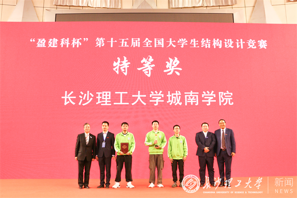 在比赛现场,云顶国际vip8866学子的精妙设计、扎实学识、高超动手实践能力和完美加载获得专家评委和参赛高校的高度评价和一致赞誉。云顶国际vip8866城南学院雷缮诚、乐宇航、潘鑫烨三位同学充分发挥竹质材料受拉性能良好等特点,采用矩形空心杆件等设计制作完成模型《再鸣》,以自重101.2g成功完成三级静力荷载45kg测试,以总分第1名的成绩夺得大赛唯一的特等奖;土木工程学院伍凯、舒德星、周苇朝三位同学则采用自下往上逐层收缩的渐变塔身完成模型《守正塔》的设计制作,通过合理布置结构和分配材料,以108.9g的自重满载负荷,以总分第2名的成绩荣获大赛一等奖。经全国大学生结构设计竞赛专家委员会评审,云顶国际vip8866被授予第十五届全国大学生结构设计竞赛“优秀组织奖”,城南学院荣获“最佳制作奖”。
