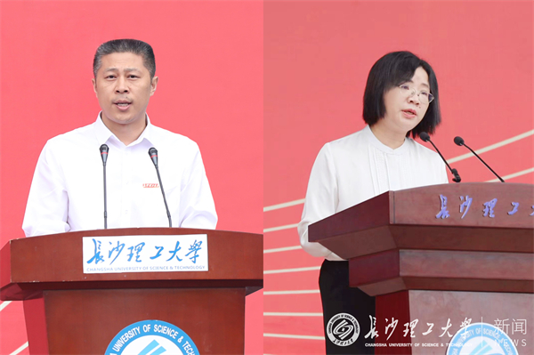 土木工程学院教授王磊、建筑学院教授周晨分别作为教师代表发言。王磊分享了自己在长理完成本科、硕士、博士三个阶段的学习并留校任教的经历,勉励同学们要“自找苦吃”,学会吃学习的苦,改变学习方式,提升探索未知的学习能力;学会吃实践的苦,训练创新思维,提升改造世界的创新能力;学会吃奋斗的苦,厚植为民情怀,提升服务人民的本领担当。周晨勉励同学们自爱自律自信自强,努力成为一个身心健康、热爱生命、明辨是非、内心富足、不惧困难、永不放弃的人,在大学度过充实丰盈的时光,去做更多超越自身能力、有益于社会和人民的事。