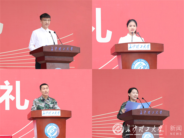水利与环境工程学院2023级本科生陈武、交通运输工程学院2023级本科生刘怀舟作为新生代表发言,他们向关心与支持他们的师长和亲友致以感谢,对即将在长理开始的大学生活充满憧憬,表示将秉承长理校训精神,牢记师长教诲,学习长理榜样,珍惜大学时光,用自己的拼搏在国家和民族进步的征途上写下属于长理人的精彩华章。