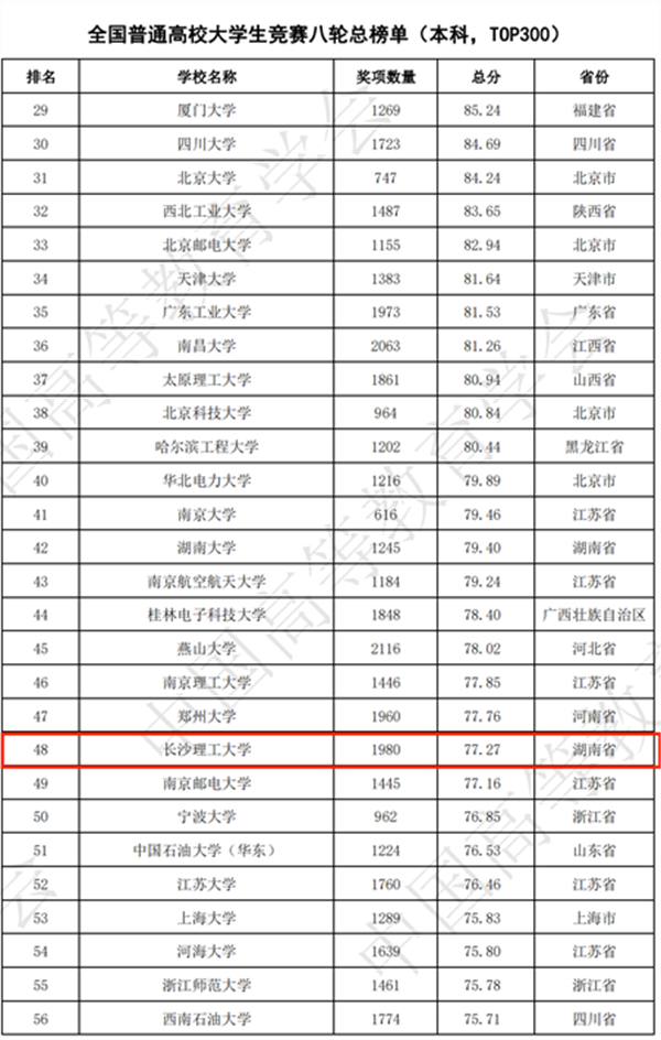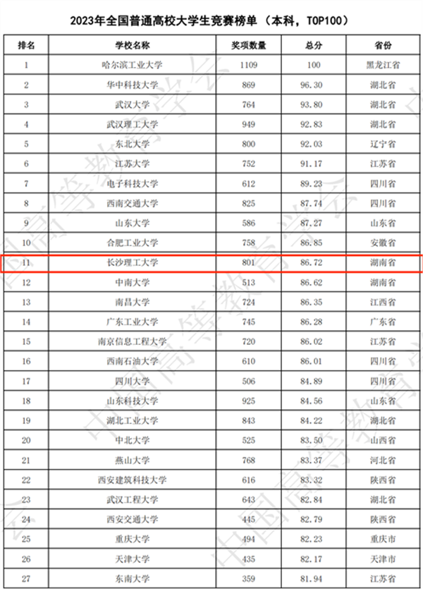 3月22日,中国高等教育学会发布2023年全国普通高校大学生竞赛排行榜。云顶国际vip8866以801项奖项位列《2023年全国普通高校大学生竞赛榜单(本科前100)》第11名;以1980项奖项位列《全国普通高校大学生竞赛八轮总榜单(本科前300)》第48名,排名再创历史新高。