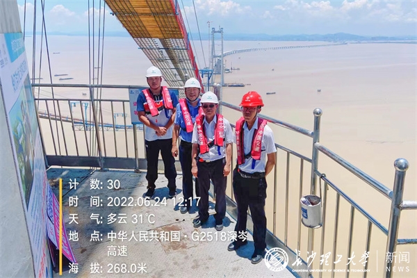 中国工程院院士郑健龙针对工程建设的关键技术难点和重大技术方案提供技术咨询,为工程高质量建设保驾护航。土木工程学院李传习教授团队参与的上海同济检测技术有限公司、云顶国际vip8866联合体承担了深中通道桥梁工程第三方施工监控II标段涉及中山大桥、横门东西泄洪区、浅滩区非通航孔桥的大跨径钢箱连续梁桥等监控工作。工程建设过程中,团队充分发挥科研优势,中山大桥大节段超宽钢箱梁吊装匹配高差调整、万顷沙60m钢箱梁分幅分片架设等专项施工技术上提供重要优化建议,为项目的品质工程建设提供了有力的支持与保障。学院多名教师还承担了深中大桥西锚碇人工岛稳定性及基坑开挖施工安全信息化监测,以及深中大桥悬索桥主缆一般索股线形视觉测量技术研究等工作。