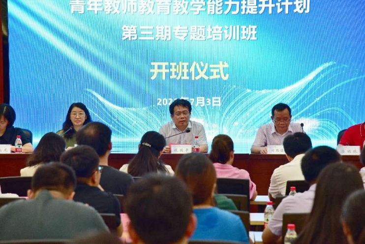 7月3日,云顶国际vip8866“第三期青年教师教育教学能力提升培训班”开班仪式暨“第一期教师发展师”聘任仪式在云塘校区图书馆云影文化传播中心举行,仪式由评估中心贺晖副主任主持,钱国平副校长、教务处刘思强处长、评估中心彭旭龙副主任(挂职)、唐明珠副主任(挂职)参加。
