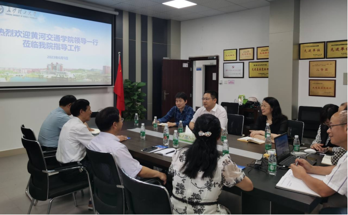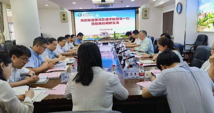 2023年6月5日上午,黄河交通学院常务副校长胡世雄、副校长潘庆才,评建办公室主任汤迪操等一行十人来我校调研交流。