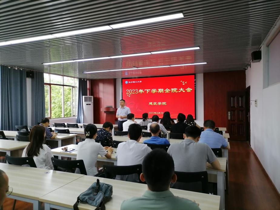 8月28日下午,建筑学院在16号教学楼多媒体教室召开新学期全体教职工大会。会议由党委书记熊鹰主持,全院教职工参加了会议。