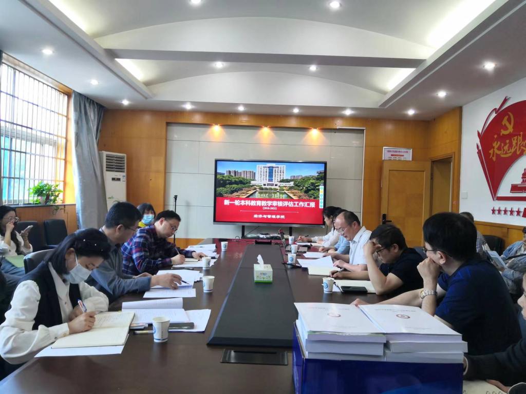 5月25日上午,学院接受了校审核评估督查第十组组长唐明珠副主任,组员熊丽君教授、欧阳国辉教授,秘书赵忠蓝老师等组成的本科教学评估工作检查。副院长(主持工作)彭新宇、副院长刘坚、副书记唐青、副院长何昊、审核评估办、教务办、学工办老师及部分系主任、教研室主任等20余人参与会议。副院长彭新宇(主持工作)致辞,副院长刘坚代表学院汇报了经管学院的审核评估工作开展情况。