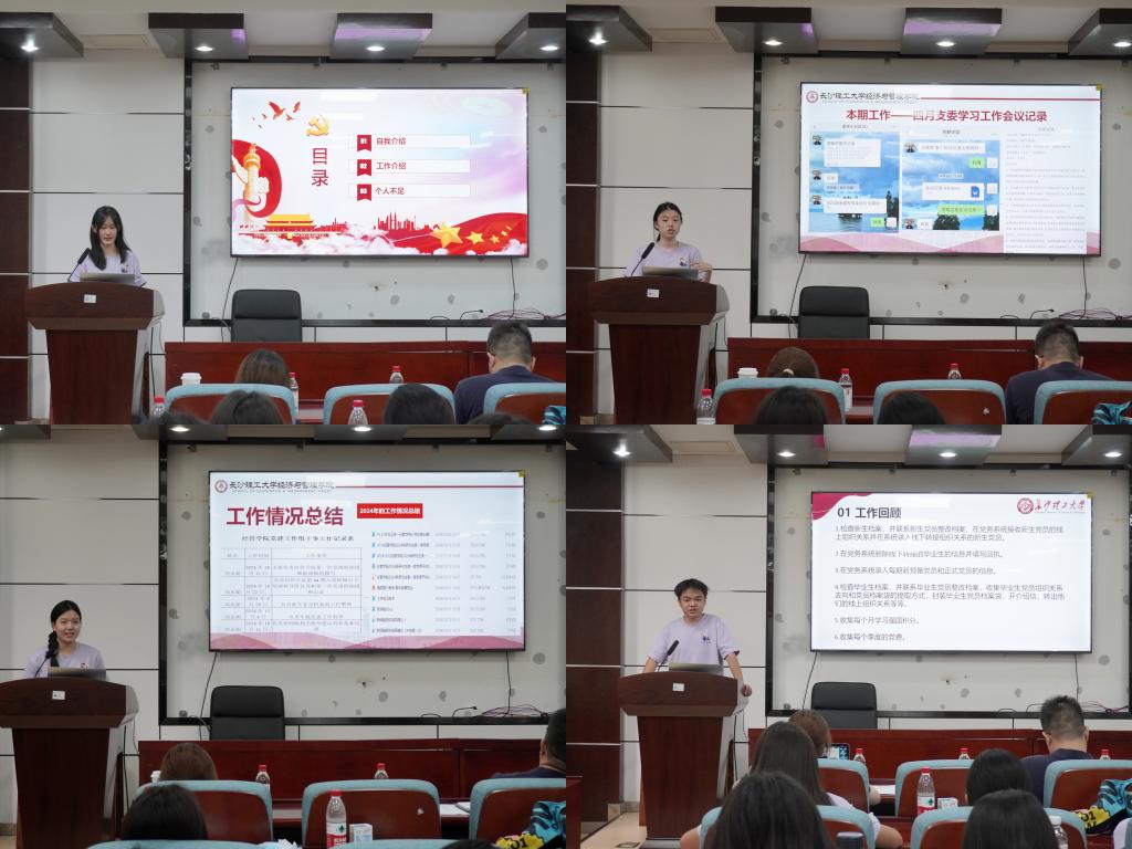 会议伊始,孙羽熙代表全体工作组组长就2024-2025学年各组工作情况等进行总结汇报。随后,各候选人按提前拟定的换届、党建之星竞选顺序,围绕部门工作认识、年度工作总结、个人收获、未来工作展望等依次进行答辩。