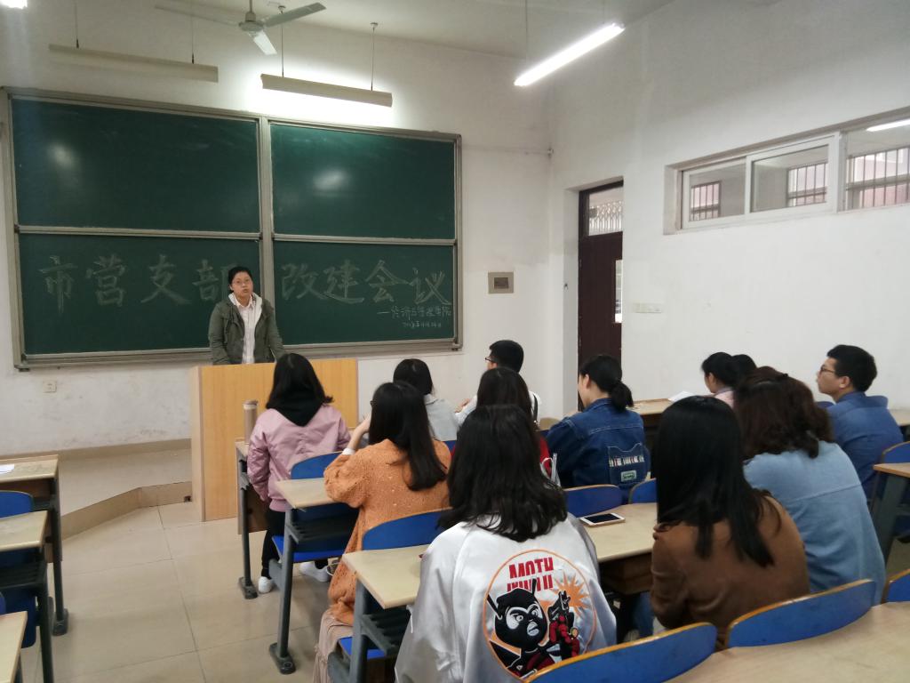 4月24日下午3:30,经济与管理学院市场营销学生支部于文科楼D101召开支部改建会议。会议由14级党员代表陈学敏主持,支部书记肖翠老师就支部建设要求和发展作总结发言。此次会议是市营学生支部成立后第一次正式会议,旨在选举支部主要干部并对支部未来发展作出要求和规划。
