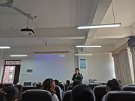 杨学华,王东武,王玉,贾莉,杨敏五位教师依次讲授“八分钟”微党课,主要围绕教学,科研,管理等方面进行沟通与交流。