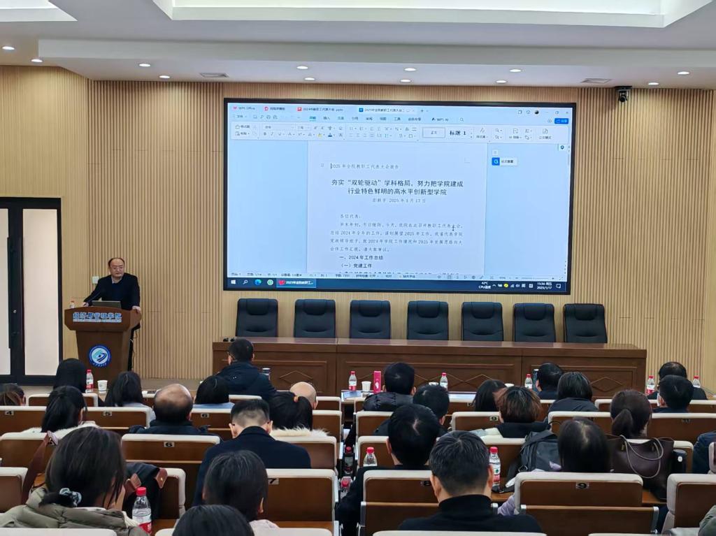 会上,彭新宇院长作了题为《夯实“双轮驱动”学科格局,努力把学院建成行业特色鲜明的高水平创新型学院》的工作报告。报告从党建工作、师资队伍建设、本科教学、学位与研究生工作、学科与科研工作、学生工作及其他工作等七个方面,全面总结了经管学院2024年的工作成果,并对2025年的工作思路进行了展望。彭院长强调,学院将继续坚持“双轮驱动”的学科发展策略,深化教育教学改革,提升科研创新能力,努力打造具有行业特色的高水平创新型学院。