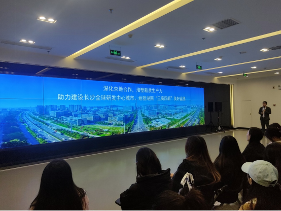 本次活动以“数智驱动,产教融合——企业研学新视野”为主题,由长沙市人力资源服务协会专家委员会主办,中电软件园等单位共同支持。学生们先后参观了“数智技术开放型产教融合实践中心”及中电软件园展厅,深入了解“园校双主体”实体化运行模式及“教学—研发—孵化”一体化格局。园区副总经理黎璐围绕运营孵化机制、项目驱动与资源转化等内容进行主题分享,并与学生展开互动交流。