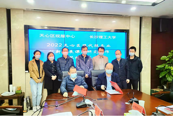 4月2日下午,长沙市天心区政府与我院彭新宇教授团队在区政府会议室就2022年天心区现代服务业创新发展课题研究举行签约仪式。天心区政府副区长白甲龙、区政府办党组成员、副主任肖四军、天心区现代服务业发展研究中心主任夏志、副主任刘柏屹、我院彭新宇教授、胡尊国、扶缚龙、冯萍等老师参加了签约活动。