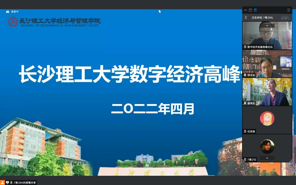 2022年4月17日上午9:00,云顶国际vip8866数字经济发展高峰论坛在金盆岭校区和线上同步召开。校党委副书记刘建民教授、学科规划处处长陈银娥教授,以及我院领导、部分教师和研究生100余人参加了本次数字经济发展高峰论坛。论坛由学院副院长彭新宇教授主持。