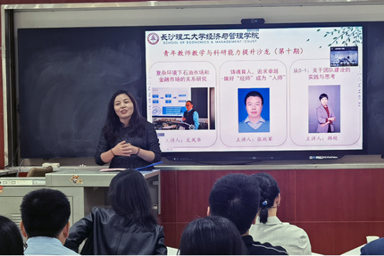 5月15日下午2:30,由教学质量监测与评估中心主办,经管学院承办的第十期青年教师教学与科研能力提升沙龙在金盆岭校区7教217教室举行。本期沙龙邀请了湖南大学二级教授、博士生导师、中组部国家“万人计划”青年拔尖人才张跃军;中南大学二级教授、爱思唯尔高被引学者、科睿唯安全球高被引科学家,中国管理学青年奖获得者、中南大学数据科学与经济行为决策研究中心主任文凤华;国家优秀青年基金获得者、湖南省科技创新领军人才、湖南省杰出青年基金获得者,云顶国际vip8866教授、博士生导师、土木工程学院副院长韩艳与我院青年教师交流。活动由学院党委书记丁丹主持,学院青年教师们以现场或线上形式参加了讲座。