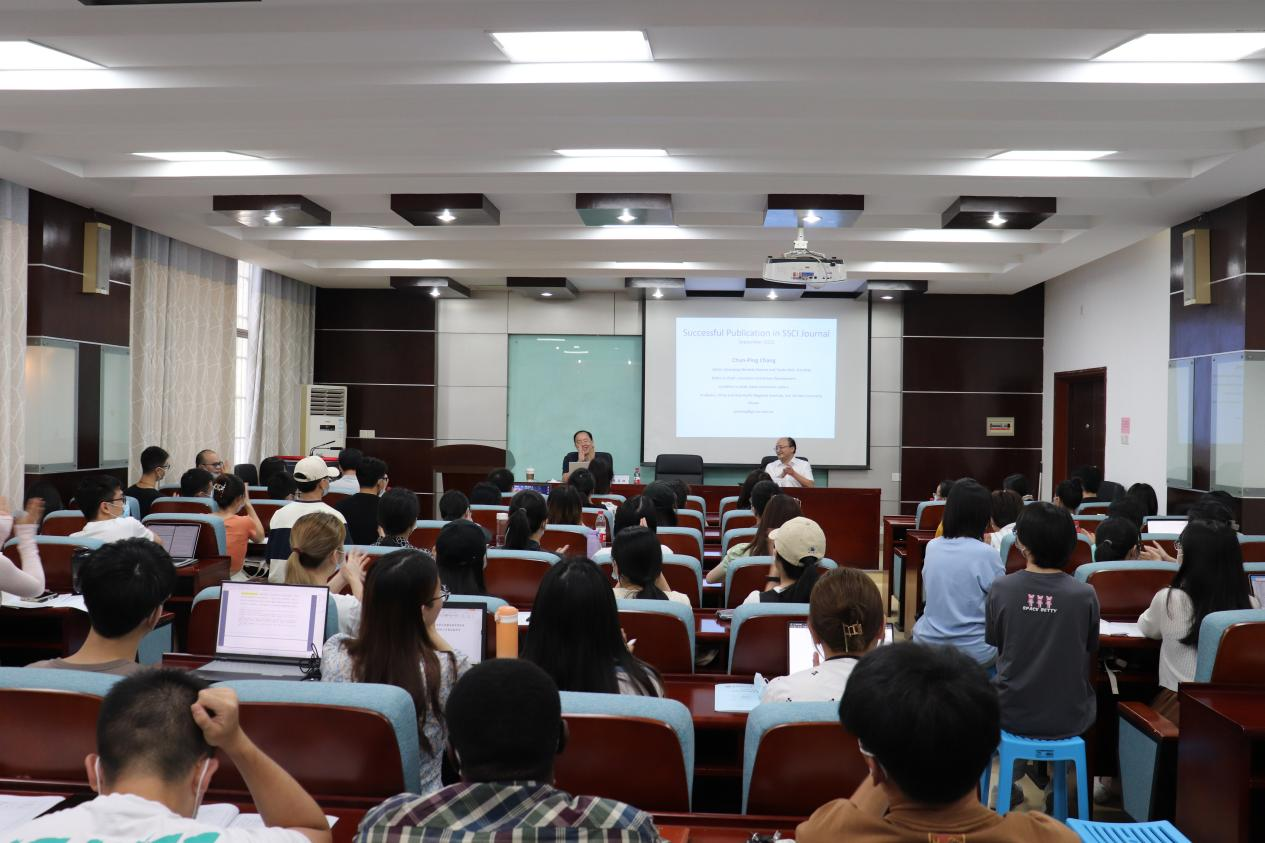 9月17日下午,云顶国际vip8866“湖湘学者”讲座教授、台湾实践大学张存炳教授应邀来我院进行学术交流,做了题为《Introduction and publication of SSCI Journals》的专题讲座。教师代表、研究生100余人参加了本次讲座。讲座由学院副院长彭新宇教授主持。