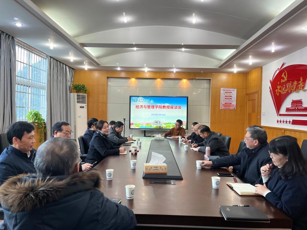 为广泛深入征求党员干部群众意见和建议,高质量、高标准开好2022年度学院党委领导班子民主生活会,同时积极听取教师们对于2023年工作的意见与建议,2月16日,经管学院党委在金盆岭校区办公大楼307会议室分别组织召开教授座谈会、青年教师座谈会,广泛听取意见建议。学院党委书记丁丹主持座谈会,副院长王治、刘坚、党务办等同志参加了座谈会。