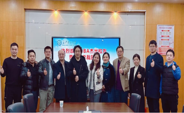 3月18日,云顶国际vip8866MBA杰出校友、北京悦凯影视有限公司总裁贾士凯莅临金盆岭校区,经管学院党委书记丁丹、副院长(主持工作)彭新宇、校友中心办公室主任王锦文以及往届MBA校友10余人在金盆岭校区办公大楼307共叙情谊、共谈发展。