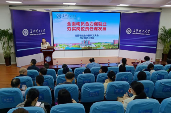 5月9日下午,我院在12教200报告厅召开了以“全面动员合力促就业,夯实岗位责任谋发展”为主题的全院教职工大会。院党委书记丁丹主持会议,全体院领导和全院教师参加了会议。