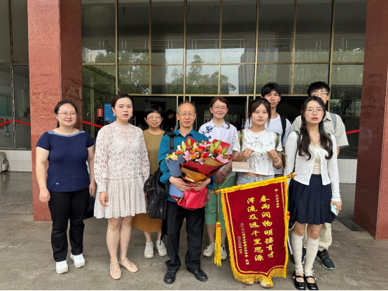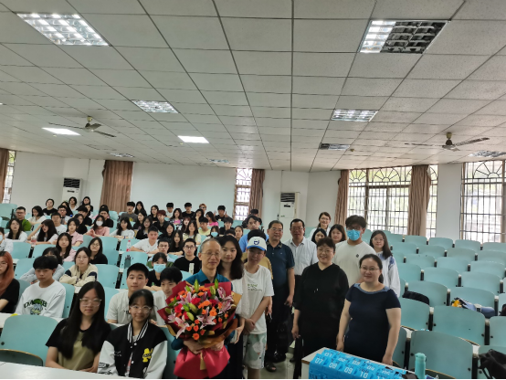 2023年5月26日上午,经管学院经贸系王虎林老师在金盆岭校区6教110教室为2022级城南财管1-2班正上他退休前最后一堂课——微观经济学,一场精心准备的荣退仪式也候场已久。当下课铃声响起,在院工会副主席曹冰玉教授带领下,经贸系教师代表手捧鲜花进入教室在空位置落座,王教授正满怀深情地赞美他的关门弟子们为最美娃娃(写在PPT上面)。下课铃一响,一位女生走到黑板边上主持退休仪式,全体起立给王老师鞠躬并鼓掌,感谢王老师对教育毕生的深情付出。接着,一位男生站起来作为学生代表向王老师致感谢辞。