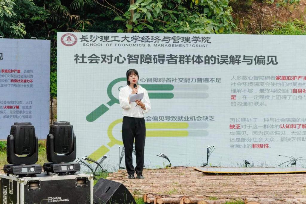 本次论坛吸引了省内多所高校近200名师生参加,在现场热烈的氛围中,我院何涛、杨舒文作为代表参与了现场的校级、院级授牌仪式。授牌仪式结束后,各个高校团队代表进行分享交流和才艺展示,我院共四个代表团队进行了讲解。首先是“共筑爱的桥梁”团队 ,其项目关注心智障碍者的成长与发展,深度分析了心智障碍者就业现状和就业困境,提出了切实有用的解决方案,为心智障碍者搭建了爱的桥梁;随后是“寻蜜桑植”公益团队,旨在成就振兴乡村的“甜蜜”事业,团队注重实践,山高路远,桑植团队一直坚持深入文化、深入农户、深入企业,用亲身实践让青春和乡村双向奔赴,一起共筑乡村美好未来;接着,“湘聚飞火”团队从一个不同的角度为我们展现了一种独一无二的女性文字,项目团队以女字为媒,促女书发展,以此更促进了国内非遗文化的传播与发展;最后,“经管学院青志协”团队介绍了其志愿项目,他们以服务同学、服务校园、服务社区、为宗旨,在各种志愿活动中献出自己的力量,力所能及的帮助他人,在奉献中展示青春的热情。