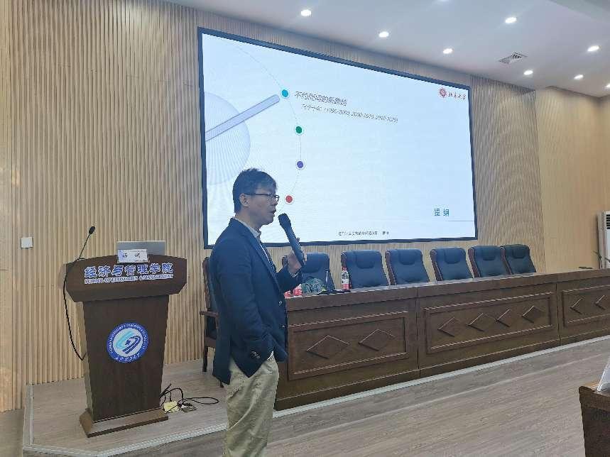 2023年10月31日上午8:30,全国经济地理研究会副会长、北京大学政府管理学院教授、博士生导师,城市与区域管理系主任薛领教授应邀为我院师生开讲经济学类专业前沿名师课第九讲,主题为“迈向计算的空间经济学”。讲座在金盆岭校区经管大楼100报告厅举行,由周正祥教授主持,经管学院副院长(主持工作)彭新宇教授、副院长刘坚教授到场交流,200多名师生现场聆听了授课。
