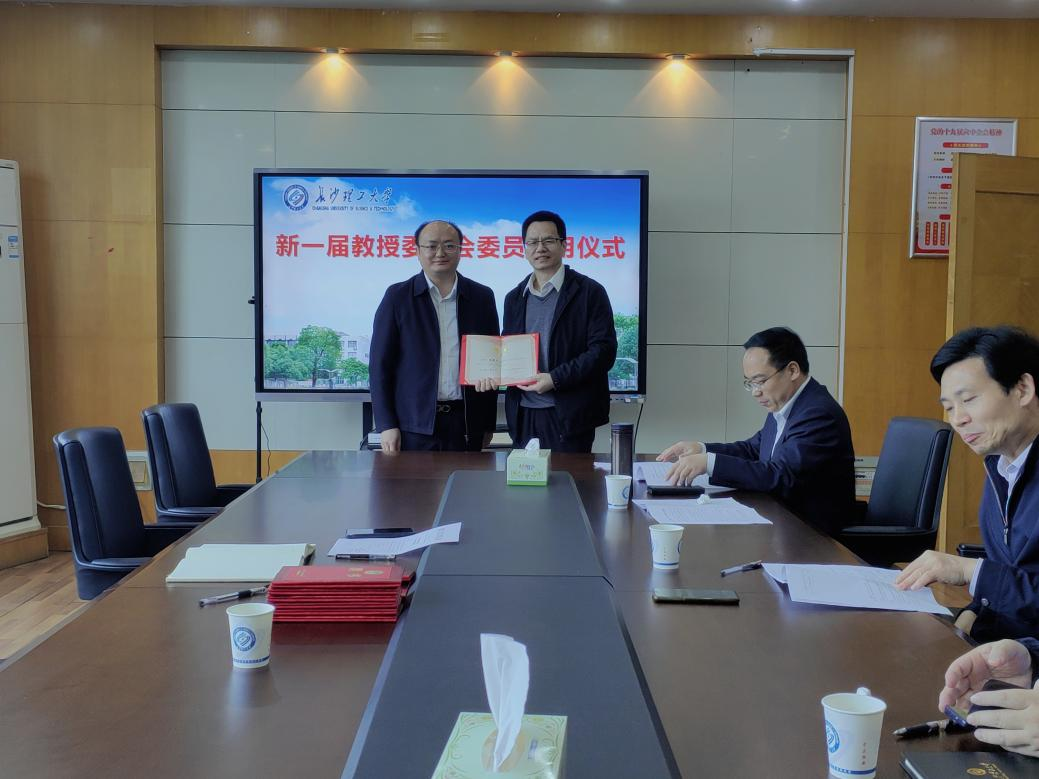 4月12日上午,经管学院新一届教授委员会委员聘任仪式在经管大楼307会议室举行。院长彭新宇宣读了《关于公布学院教授委员会组成人员名单的通知》,并为新一届教授委员会委员颁发了聘书。新一届教授委员会由张新华等 9 位教授组成,任期为三年。张新华教授担任教授委员会主任。