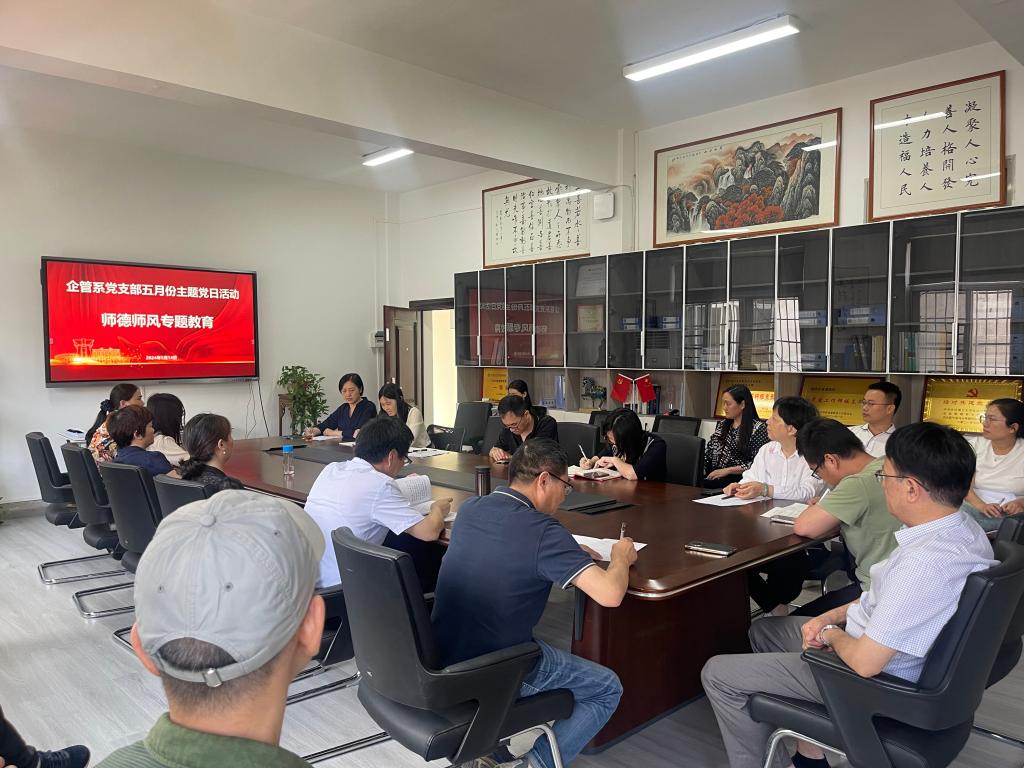 根据学院工作安排,5月14日,经管学院各系开展党纪学习教育和师德师风专题法纪教育,教育引导广大教职工切实把思想和行动统一到党中央、省委、学校决策部署上来,增强法纪意识,坚守师德底线,时刻自重、自省、自警、自励,大力提升依法执教、规范执教能力,全面夯实师德师风建设基础。