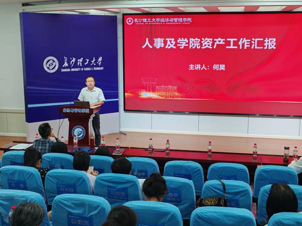 6月4日下午,经管学院在金盆岭校区12教200学术报告厅召开教职工大会。学院党政领导班子成员、全体教职工参加会议。会议由院党委书记马丽主持。