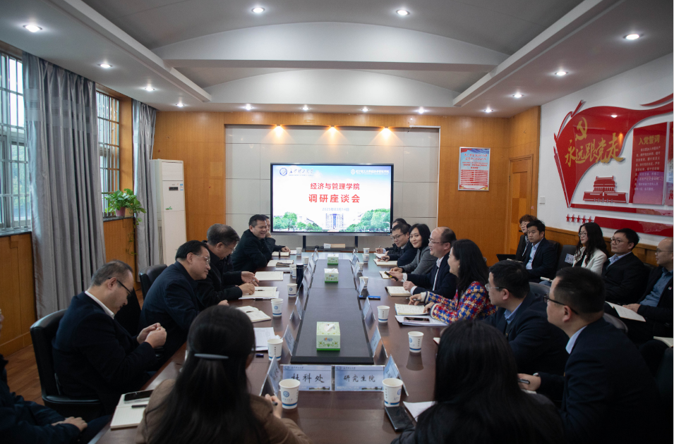 3月14日上午,校党委书记付宏渊带队来学院调研指导工作,校党委委员、副校长谈传生、刘朝晖,校党政办、人事处、教务处、科技处、社科处、研究生院等部门负责人陪同调研。学院全体班子成员和各系主任及支部书记参加了调研座谈。