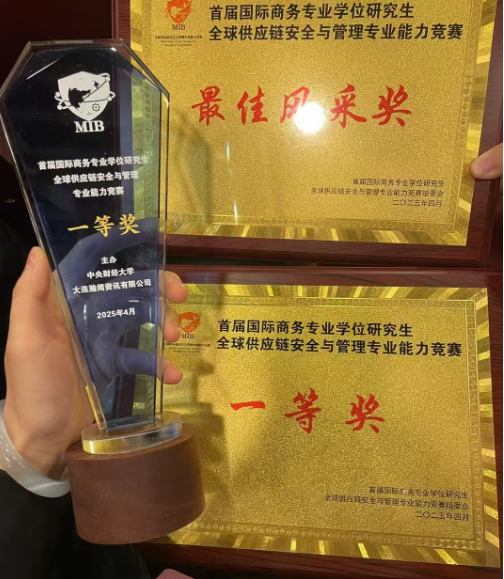 2025年4月19日,由全国国际商务专业学位研究生教育指导委员会指导,中央财经大学、大连瀚闻资讯有限公司主办的首届国际商务专业学位研究生全球供应链安全与管理专业能力竞赛总决赛在中央财经大学圆满落下帷幕。经过激烈角逐,云顶国际vip8866在全国总决赛中获得一、二、三等奖各1项,优胜奖2项。