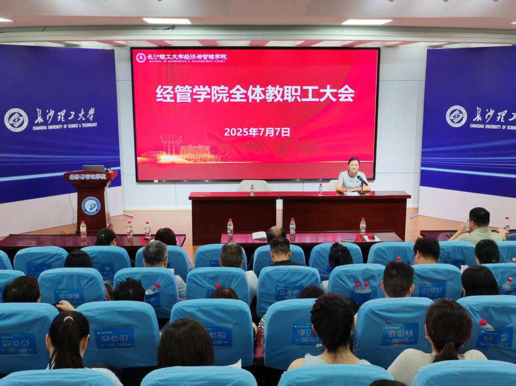 7月7日下午,经管学院在金盆岭校区12教200学术报告厅召开全体教职工大会,回顾上半年学院各项工作进展情况,部署安排暑期阶段各项重点工作。学院党政领导班子成员、全体教职工参加会议。会议由院党委书记马丽主持。