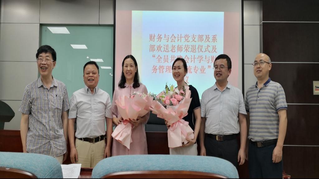 6月29日下午,财务与会计系党支部与系部欢送荣退教师仪式暨“全员共建会计学与财务管理一流专业”会议在7教212举行。