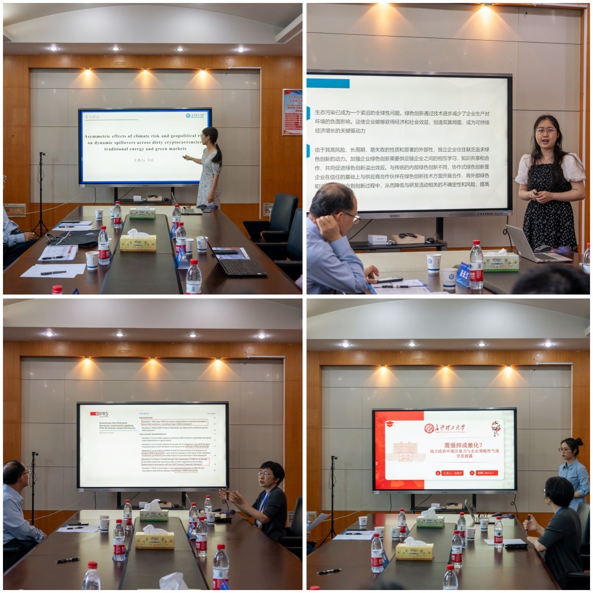 7日下午在经管大楼307室举行学术论文研讨会由云顶国际vip8866张新华教授主持。王竹泉教授探讨了企业异质性资源测度及其对财务报告改革的启示;沈洪涛教授从会计视角构建供应链低碳管理理论框架。云顶国际vip8866陈巧博士基于财会监管外生冲击,研究其稳定资本市场的机制;吴昊博士剖析了气候风险与地缘政治对加密货币、化石能源、绿色市场风险传递的影响;张茗博士利用社会网络分析探索供应链焦点企业对绿色协同创新的作用;博士生龙丽宇则分析了政府环境注意力对企业策略性气候信息披露行为的影响。吕长江教授、刘斌教授应邀担任点评专家从不同角度对论文进行了的精准点评,提出了完善建议。研讨会拓宽了研究视野,与会师生纷纷表示受益匪浅。