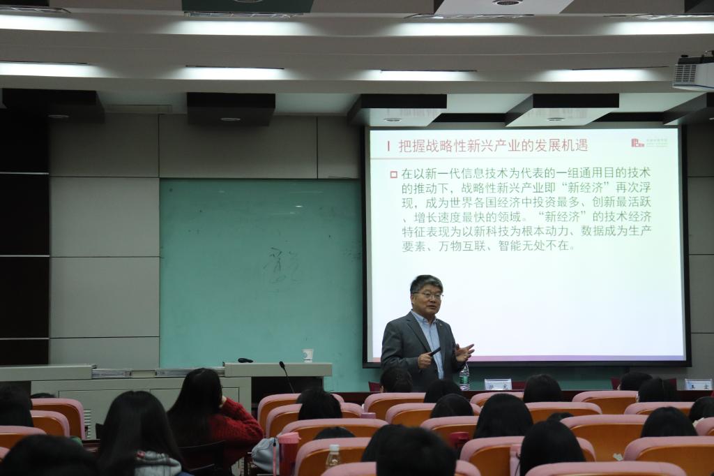 第十四届经管学院研究生学术文化节正如火如荼地开展着,2019年4月12日下午4:00在金盆岭校区7教212,我院邀请上海交通大学的陈宪教授做题为“从新兴产业和城市化视角解读培育发展现代化都市圈”的讲座,院党委书记王宏担任此次讲座主持人,经管学院部分老师和研究生参加了本次讲座。
