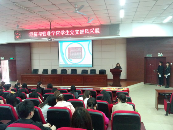 为进一步贯彻党的十八大、全省党的群众路线教育实践活动工作会议精神,推进创先争优活动的顺利开展,展现我院各个党支部的风采。3月25日下午2:00,经管学院会计第一学生党支部和金融学生党支部联合承办的以“走群众路线,为人民服务”为主题支部风采展于文科楼A200顺利举行。我院13级辅导员计潇老师出席活动,各支部书记上台主讲,全体党员参与其中。