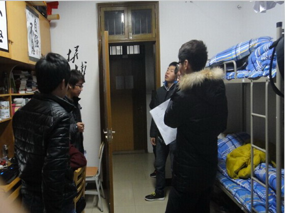 12月16日晚上21:00,经管学院青马培训班学员在学院学生会各部长的带领下到14级学生的寝室开展检查寝室设备的活动。参加此次活动的学员包括我院分团委学生会生活部、学习部以及文艺部等部门成员,组织部负责总体活动的安排并监督工作情况。