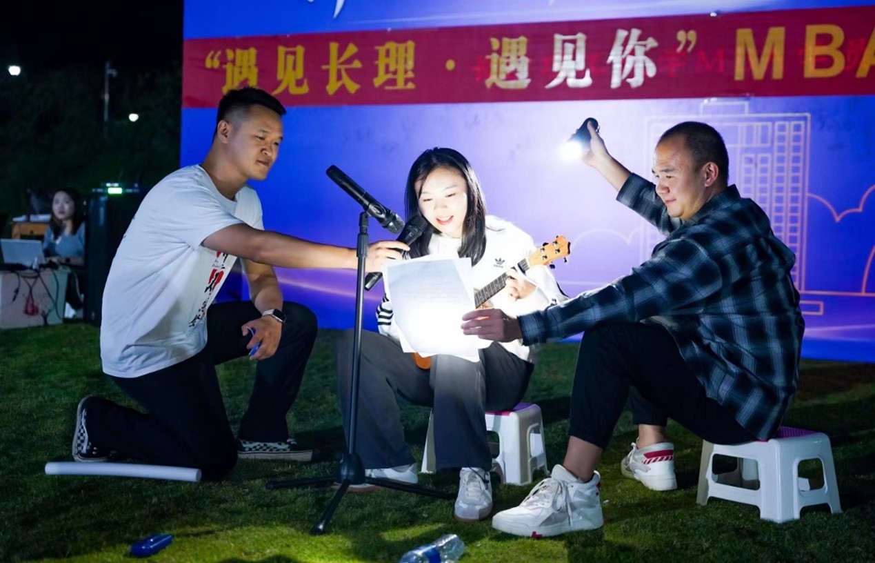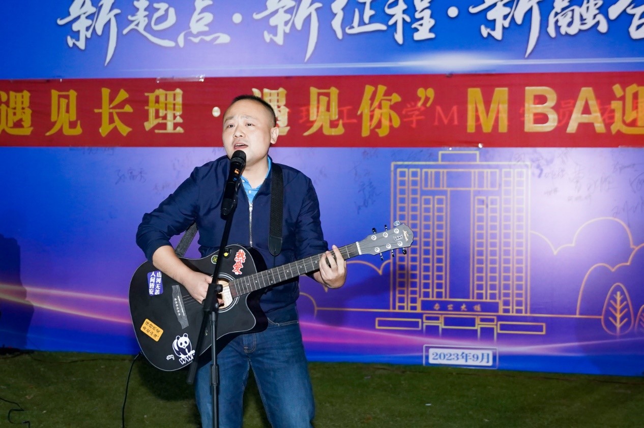 2023级学员蒋克恨倾情献上吉他弹唱《New Boy》,浑厚有力的男声,诉说他在长理的故事,他对长理的感情。走出长理,再回到长理,初心不改,永远都是长理人;2023级学员刘琪钧、唐航舟带来古筝二胡合奏《沧海一声笑》,气势如虹,展现新学员们意气风发,博得掌声不断;2023级学员聂佩弦尤克里里弹唱《情非得已》,温柔的歌声给晚会增加一份独特柔情。回应学长学姐的的欢迎,并祝长沙理工大学MBA明天会更好!