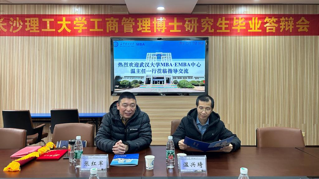 2024年1月16日,武汉大学MBA·EMBA中心副主任温兴琦一行莅临长沙理工大学MBA教育中心,与长沙理工大学经济与管理学院副院长王治、长沙理工大学MBA教育中心主任扶缚龙、吴净老师以及长沙理工大学MBA联合会主席萧超文、副主席朱师翰、办公室主任薛煜等进行了深入的交流与指导。