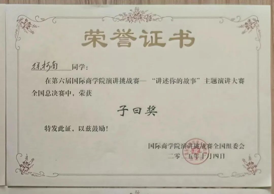 荣誉的背后,是数月来的精心准备与辛勤付出。在MBA中心主任扶缚龙的全程指导下,三位选手经历了多轮严格的稿件打磨与模拟演练。扶主任从演讲结构、思想深度到舞台表现力,为队员们提供了高屋建瓴的专业指导。MBA联合会主席贾超益则成为了团队的“最强后盾”,从行程安排到赛场协调,事无巨细地做好了后勤保障,让选手们得以全身心投入比赛。