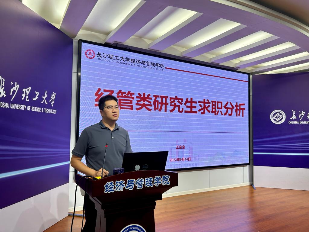 9月14日下午,经管学院在金盆岭校区12教200举行了“2021级研究生年级大会暨就业动员会”,就业专干王宝宝老师、辅导员肖翠老师及全体21级在校研究生参加会议,会议由肖翠主持。