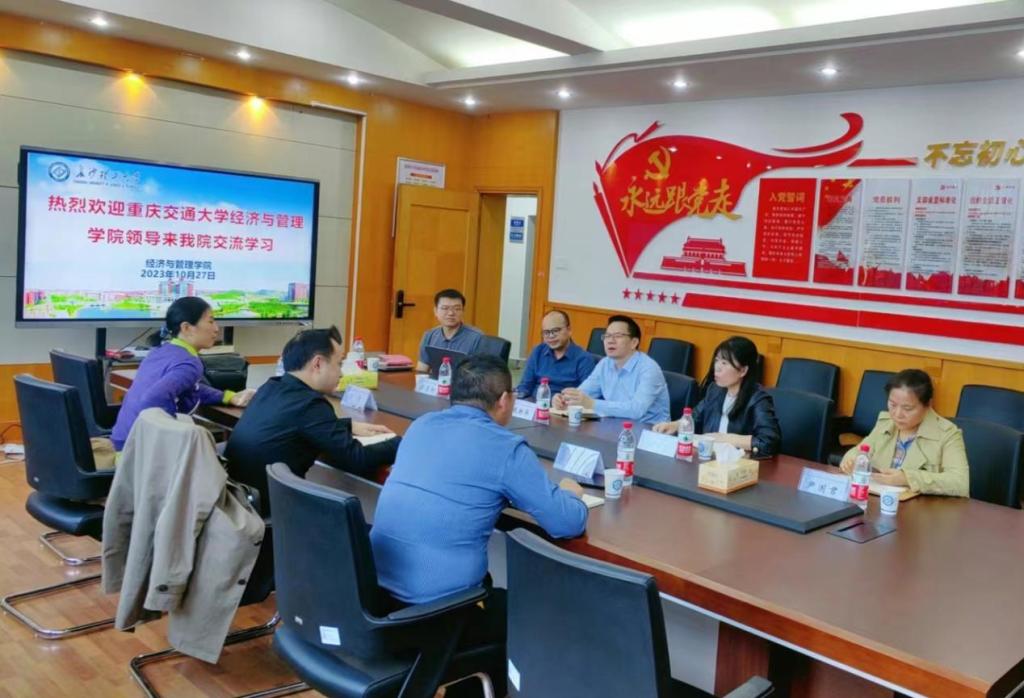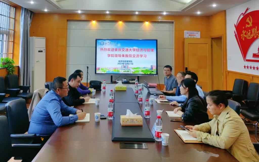10月27日下午,重庆交通大学经济与管理学院副院长李豪、院长助理经济学专业负责人王春杨、经贸系主任王方等一行三人来我院进行调研。座谈会由学院副院长刘坚主持,张新华副院长、数字经济系主任胡尊国,国际经济与贸易系副主任尹国君,教师李佳威参加了本次交流。